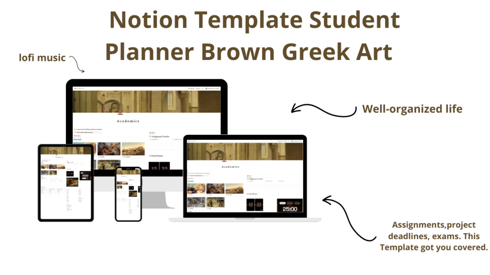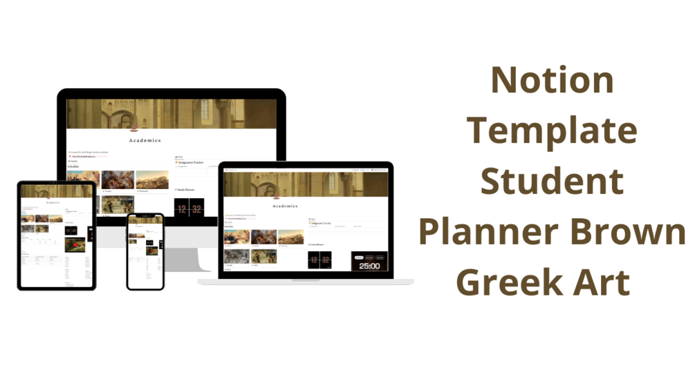 Introducing the Brown Greek Art-themed Student Planner Notion Template: Embrace the Beauty of Ancient Wisdom while Mastering Your Modern Life!