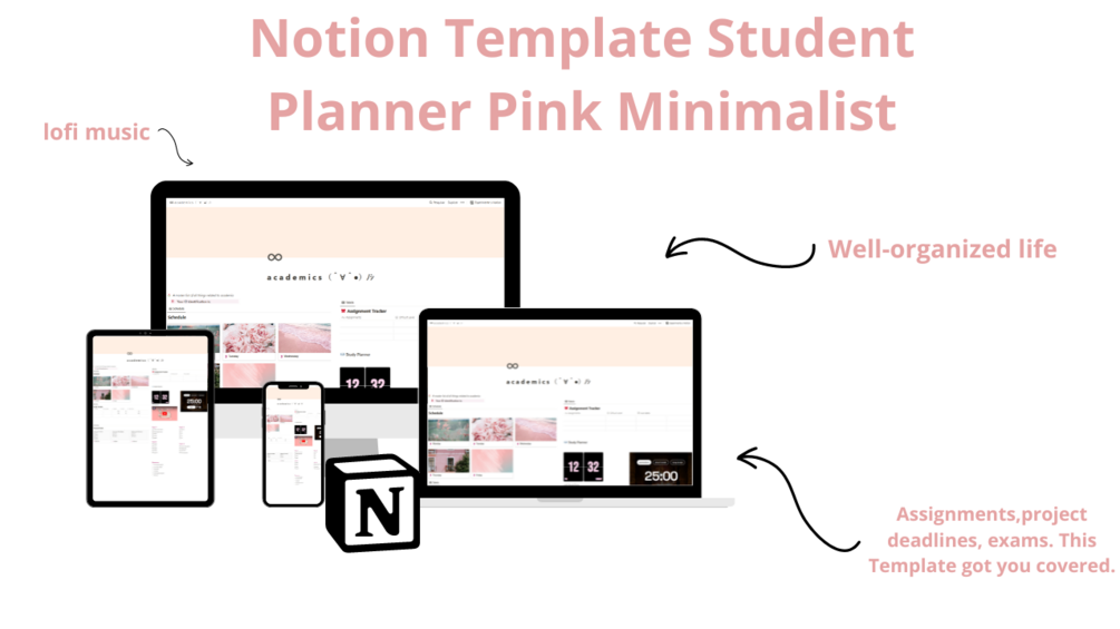 Notion Template Student Planner Pink Minimalist