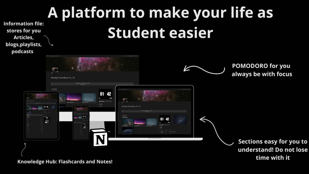 This platform make students' lives easier by offering clear and intelligent organization features for notes, checklists, study sessions, files, flashcards, and more. With this comprehensive suite of tools, students can effortlessly manage their academic tasks and resources, ensuring they stay on top of their coursework.
